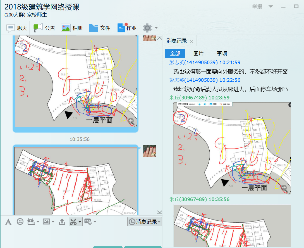 上课的方式以QQ直播中的屏幕分享为手段,通过直接演示进行讲解。直播的同时还会找一些学生容易接收的网络资源或慕课作为教学的补充资料。在课程中,老师发现学生对交通建筑的造型特点掌握不佳,就通过专题讲座的形式对该类知识点进行补充。同时在课堂中穿插小组讨论,促进学生的交流,也提升他们的学习兴趣。