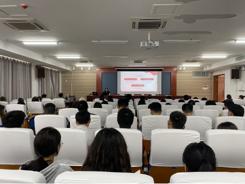 党委书记何璘主持专题党课,党课在学生活动中心2001会议室举行。