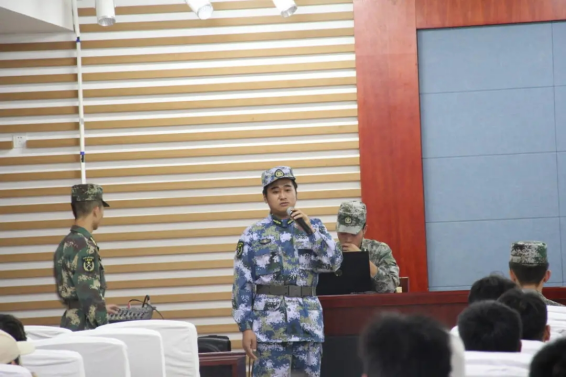 紧接着,参会人员观看学院征兵入伍宣传视频,然后,由退伍老兵做宣讲,分享入伍经历。首先是陆定红学长分享他在部队的一些经历,其次是林鑫学长分享他的感触和一些注意事项。随后,何璘书记做了总结发言,她强调各班班长一定要把此次会议上的利好消息和政策传递给班上同学,并告知班上符合征兵入伍条件的同学(年龄、身高、视力、体重等)积极报名,并就毕业班同学的学业情况做分析、鼓励毕业班学生积极报名。