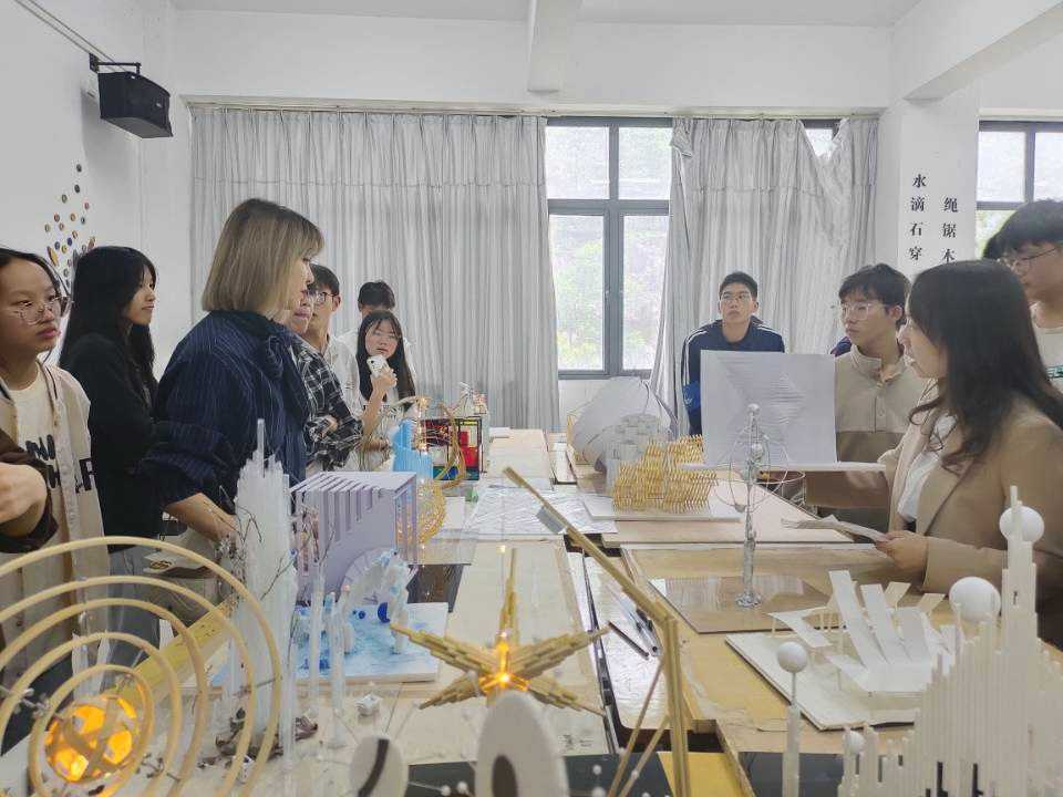 在展览中,通过建筑模型、现实体验、绿色设计和多元文化融合,呈现未来城市的创新与美学,并强调功能与美的统一,生态与人文的共存,激发学生对未来城市发展的深刻思考和创意灵感。