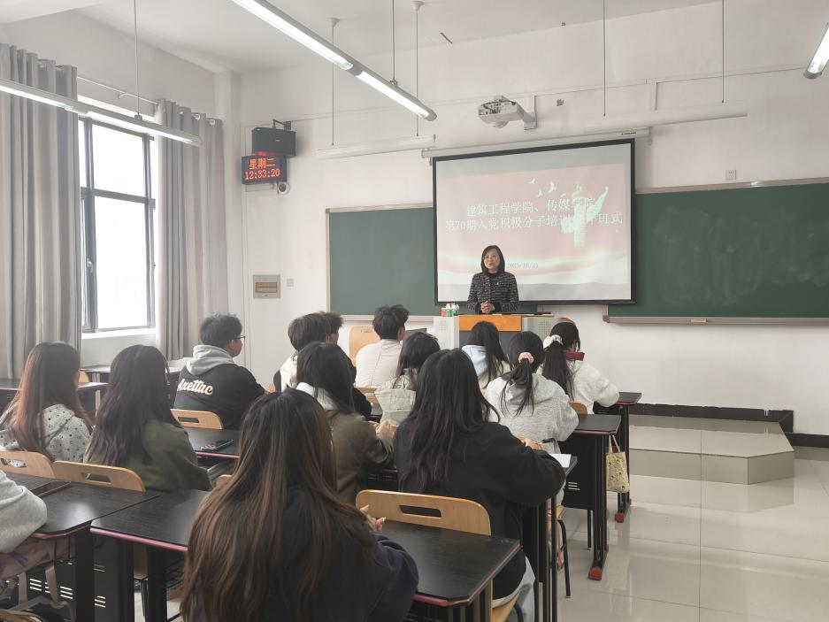 第70期入党积极分子培训班开班。院党委书记何璘出席开班式并作动员讲话,辅导员杜悠悠主持开班式,30名入党积极分子参加培训。