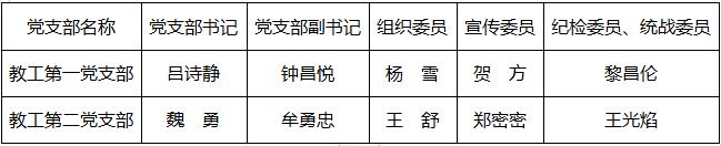 党委下辖四个党支部:两个教工党支部、两个学生党支部。机构设置如下: