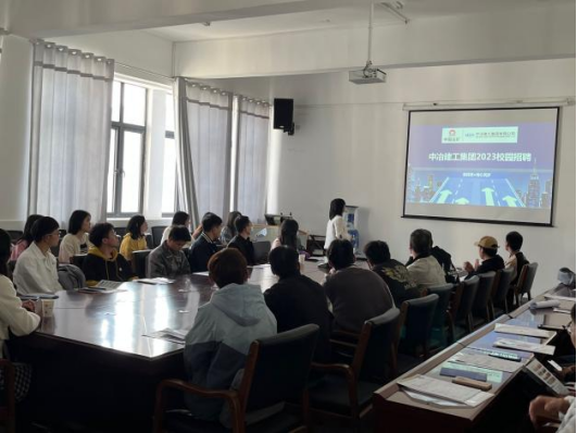 学生工作办公室主任乐筑怡以及中冶建工集团有限公司人力资源部负责人、2017级工程管理专业优秀毕业生吴蕾出席本次宣讲会,招聘会面向全体2023届土木工程、工程管理专业应届毕业生,共计70余人积极参与。