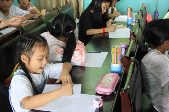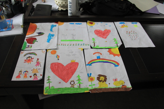 天有不测风云,正当扎染手作体验课如火如荼开展之时,一场突如其来的暴雨打乱了原先的计划,暴雨持续了很久,也没有要停的迹象,临时课堂里灌满了水,手作课被迫中止。志愿者们马上启动了应急预案,在室内开展了绘画和制作感恩贺卡的活动,其目的是让小朋友们自由地发挥自己的想象力,用自己亲自绘画的作品制作感恩贺卡并写上感恩词送给家人。感恩是中华民族的一项传统美德,通过自己动手制作感恩贺卡,让孩子们用实际行动表达对家人的感恩,在进一步增进亲子关系的同时,能够借此活动在每个孩子心里种下感恩的种子,感恩亲人、感恩朋友、感恩身边所有美好的事物,让小朋友们懂得感恩父母及长辈的养育之恩,让孩子们怀抱感恩之心,快乐地成长。
